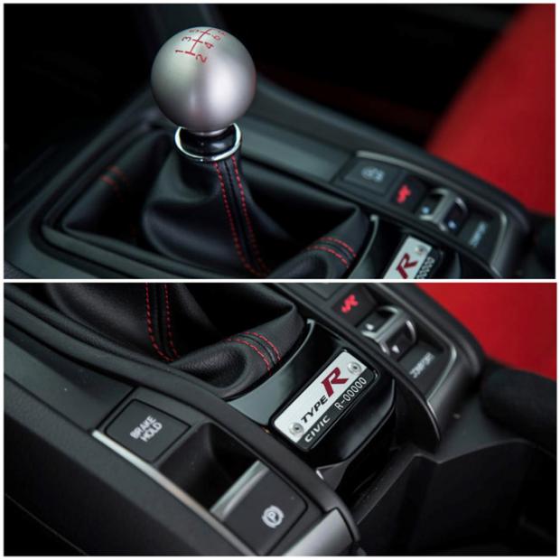 Hộp số sàn 6 cấp truyền động từ động cơ tới bánh thông qua hệ dẫn động bánh trước. Tuỳ chọn hộp số này cho thấy Civic Type R hướng tới những khách hàng máu mê tốc độ và ưa thích cảm giác ngồi sau vô-lăng. Hệ thống điện tử cung cấp các tuỳ chọn vận hành: Comfort, Sport và đặc biệt chế độ đua R+ giúp tự động tinh chỉnh hệ thống treo, độ nhạy ga hay trợ lực vô lăng phù hợp với từng chế độ chạy xe.