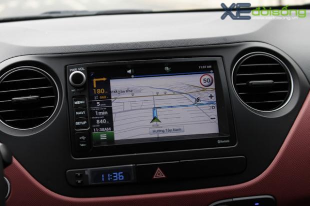 Màn hiển thị kích thước lớn 7-inch tích hợp sẵn bản đồ định vị mà Hyundai phát triển riêng cho khách hàng Việt Nam. Tuy nhiên ngay ở phiên bản cao cấp 1.2AT này vẫn chưa được áp dụng camera lùi