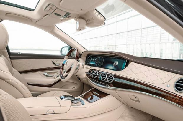Khoang nội thất của Mercedes-Maybach sử dụng nhiều chất liệu da và gỗ cao cấp. Tất cả các phiên bản đều sử dụng ghế da designo Nappa hoặc Nappa. Bảng điều khiển trung tâm được đính đồng hồ cơ học phong cách cổ điển, chế tác bởi hãng đồng hồ danh tiếng IWC. Hệ thống âm thanh vòm Burmester® high-end 3D 24 loa, công suất 1540 watt sẽ tiếp tục xuất hiện trên tất cả phiên bản.