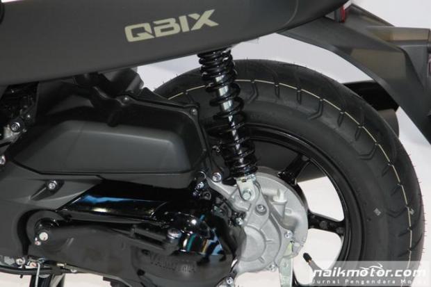 QBIX gồm 3 phiên bản gồm bản tiêu chuẩn, QBIX S và QBIX ABS. Cả 3 phiên bản đều dùng lốp không săm với lốp trước 100/90, trong khi lốp sau trên bản tiêu chuẩn là 110/90, bản S là 130/70 và bản ABS là 140/70. Trang bị an toàn với phanh đĩa đơn trước với heo phanh một piston và phanh đùm phía sau. Riêng bản QBIX ABS sẽ được bổ sung hệ thống chống bó cứng phanh ABS với bánh trước và hệ thống khóa thông minh Smart Key khởi động bằng núm vặn tương tự mẫu xe NVX 155.