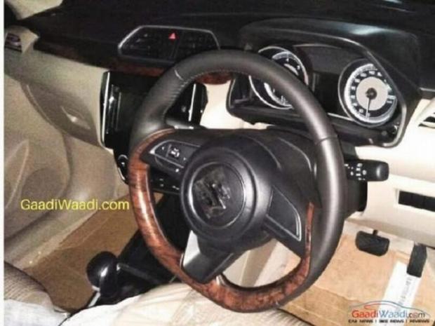 Nội thất Dzire hé lộ được sử dụng da bọc màu đen và màu be tương phản, vô lăng thể thao 3 chấu tích hợp các nút bấm tiện ích cùng bảng đồng hồ Analog truyền thống bên cạnh một số chi tiết mạ crôm và ốp giả gỗ. Bên trong nội thất xuất hiện hệ thống màn hình cảm ứng thông minh SmartPlay Maruti tích hợp Android Auto và Apple CarPlay.