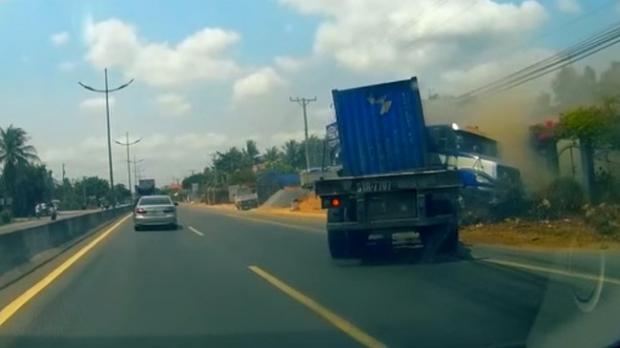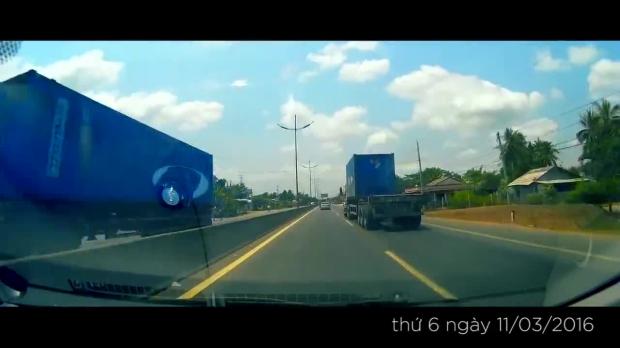 Camera hành trình của một xe hơi vừa ghi lại tai nạn liên quan đến chiếc xe container mang biển kiểm soát 15C-092.20 kéo theo rơ-moóc trên đoạn đường vừa ra khỏi cao tốc Sài Gòn - Trung Lương khiến nhiều người xem không khỏi giật mình.