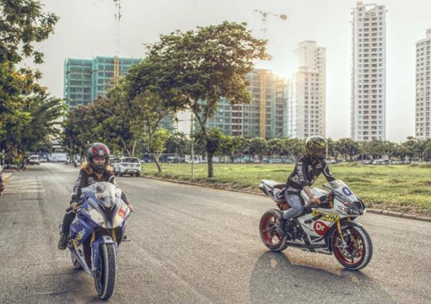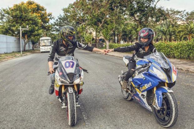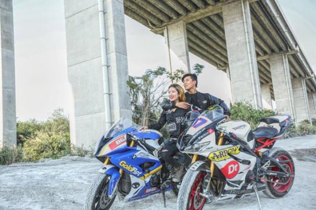 Nguyễn Thị Linh Nhi và Jay Nguyễn đã có những khoảnh khắc tuyệt đẹp bên cạnh hai siêu mô tô BMW S1000RR và Triumph Daytona 675R.