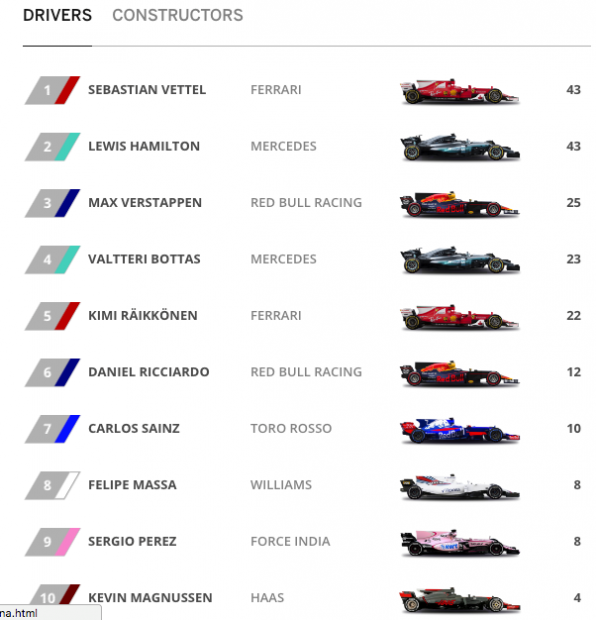 Xếp hạng các tay đua sau chặng 2 F1 2017
