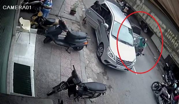 Sự việc xảy ra khoảng 8h30 sáng ngày 20/4/2017 tại phố Đề Thám, Quận 1 , tp.Hồ Chí Minh và được ghi hình lại bởi camera của tiệm bánh bên đường.