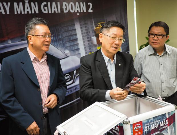 Ban lãnh đạo Nissan Việt Nam và đại diện một số đại lý tiến hành bốc thăm giải thưởng chương trình khuyến mại mua xe X-Trail giai đoạn 2.