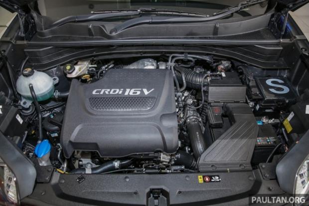 Cũng như bản máy xăng, thay đổi lớn nhất nằm ở động cơ. Xe thay động cơ 2.2L trước đây bằng động cơ CRDi 16V 2.0L đáp ứng tiêu chuẩn Euro4 với công suất 183 mã lực và mô-men xoắn đạt tới 400Nm ở mức 1.750-2.750 vòng/phút. So với động cơ xăng công suất 153 mã lực và 190Nm mô-men xoắn, có thể thấy sức kéo của động cơ dầu lên tới hơn gấp đôi. Ngoài ra, xe đi kèm hộp số tự động 6 cấp và hệ thống dẫn động 4 bánh AWD (các phiên bản máy xăng dẫn động cầu trước).