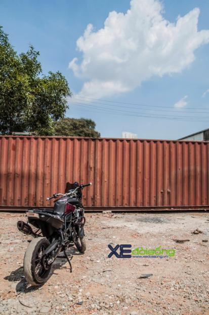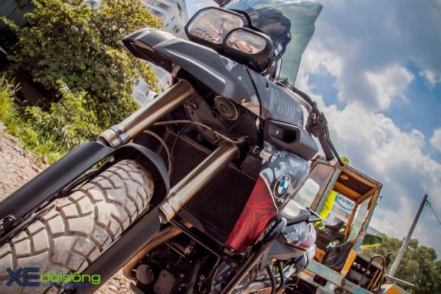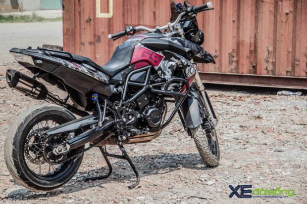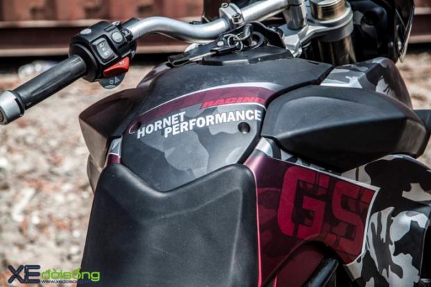 Chiếc xế độ trong bài thuộc sở hữu của biker Đoàn Sơn, một trong những người đứng đầu của Workshop Hornet Performance và được lột xác bởi những người thợ có nhiều sức sáng tạo của G-Hornet, một đơn vị trực thuộc Workshop này. Bản độ BMW F800GS với sắc phục camo được đặt tên Dakar camouflage với tông màu xám mờ chủ đạo xen kẽ với sắc đỏ candy. Với màu xám bụi bặm của F800GS, người thợ trực tiếp thực hiện bản độ Dakar camouflage là nghệ sỹ Lee Chill (người thực hiện phiên bản Ducati 899 Dark Bull F1 mà xedoisong.vn đã từng giới thiệu) nói rằng: 'Mình không thích các phong cách quá nổi bật và màu mè, thay vào đó là những 'gam' màu mạnh mẽ, cuốn hút. Trên nền xám của chiếc xe này, mình thêm kỹ thuật aibrush để biến nó thành bảng màu camo lấy ý tưởng từ sắc phục của những người lính đầy chất phong trần'.