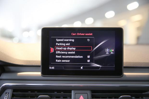 Hệ thống hiển thị trên kính lái là tính năng chỉ riêng phiên bản đặc biệt phục vụ APEC 2017 mới có so với Audi A5 phiên bản tiêu chuẩn.