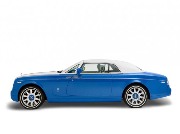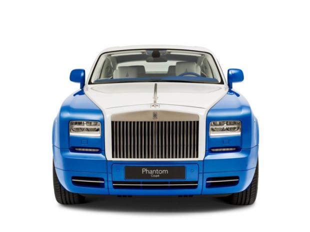 Chiếc Phantom Coupe trong bộ sưu tập mang tông xanh trắng rất đẹp đẽ và trang lịch.