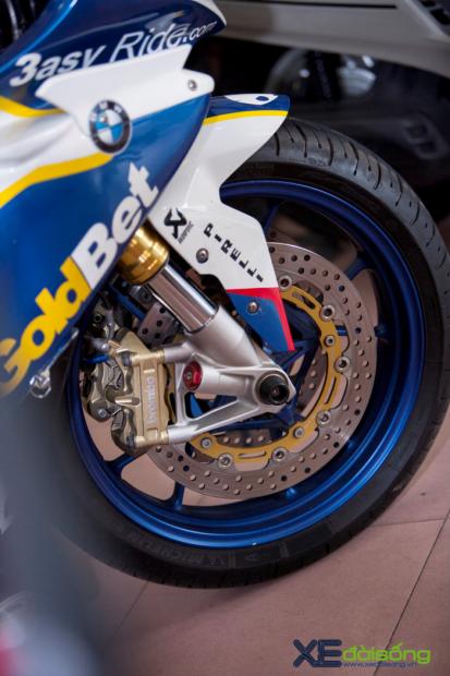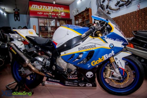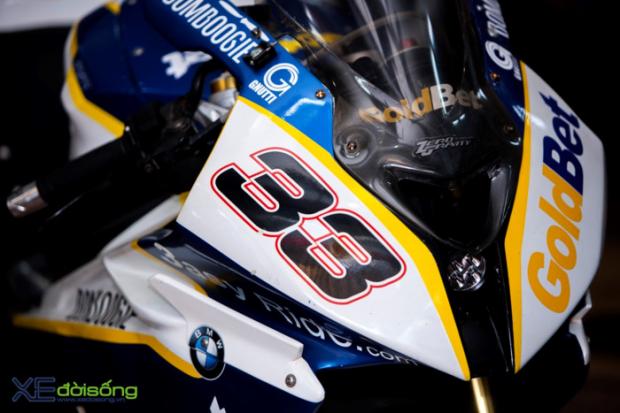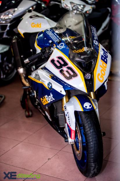 Siêu môtô BMW S1000RR phiên bản WSBK ở bài viết này về Việt Nam trong màu áo đội đua GoldBet và gắn số hiệu #33. Trên thực tế, chiếc xe hiện tại nằm ở Showroom Motor Pro (HCM) và chỉ còn giữ lại phần động cơ, dàn áo đua và ống xả Akrapovic chuyên dụng. Tất cả những món đồ phụ trợ như giảm xóc Ohlins FGR, mâm hợp kim, lốp đua chuyên nghiệp... đều đã được tháo bỏ để phù hợp thủ tục đăng ký biển số lưu hành. Tuy vậy, chiếc BMW S1000RR này vẫn được xem là những chiếc siêu xe đường đua hiếm hoi, mạnh mẽ và có giá trị nhất hiện nay trong làng Super Bike, đặc biệt với các tay chơi có sở thích sưu tầm.