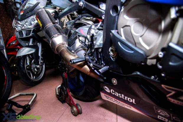 Những món đồ chơi còn sót lại trên chiến mã này nổi tiếng này cũng đủ để nó trở thành một chiếc xe độ với nhiều tiện ích phụ trợ, giúp gia tăng khả năng vận hành cũng như tăng thêm nét hầm hố cho xe. Bên cạnh kính gió Zero cỡ lớn, tay phanh của xe sử dụng cùm Gale Speed Racing với ống tiếp dầu cực dài, tay côn 6 số đồ chơi cho khả năng bóp côn nhẹ nhàng. Phía dưới chân thắng và bộ số, S1000RR sử dụng Rear Set của K-Factory Riding, ống pô Akrapovic nguyên bản sân đua full carbon với họng 66mm, bộ cổ pô full titanium cùng nhiều chi tiết carbon siêu nhẹ khác.