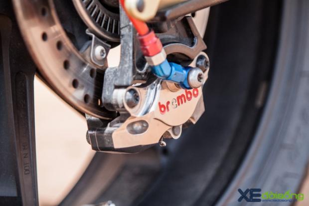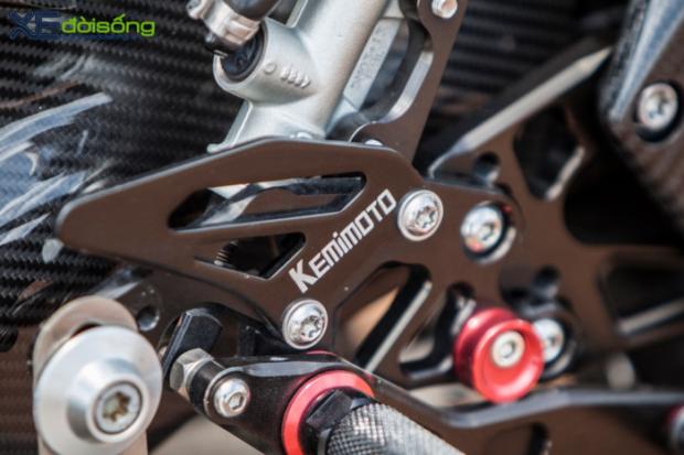 Phía trước, xe trang bị kính gió Magical carbon tăng khả năng khí động học, hệ thống an toàn cũng được thay đổi hoàn toàn với kẹp phanh Brembo GP4-RX trước và Brembo Billet HP Nickel sau. Hai phanh dầu trước được truyền tải lực thắng thông qua cùm thắng Brembo RCS, phía sau với pen đạp kết hợp cùng bộ Rear Set Kemimoto CNC.