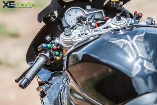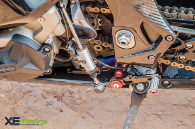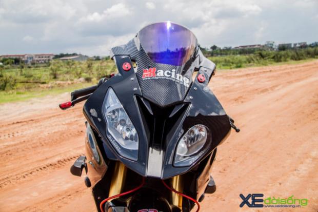 Chiếc S1000RR trong bài được khoác lên mình bộ áo bằng chất liệu carbon nhằm giảm trọng lượng xe, kết hợp cùng bộ mâm 7 cây bằng hợp kim nhôm thừa hưởng từ BMW HP4 biến nó trở nên nhẹ nhàng hơn rất nhiều so với nguyên bản sản xuất.