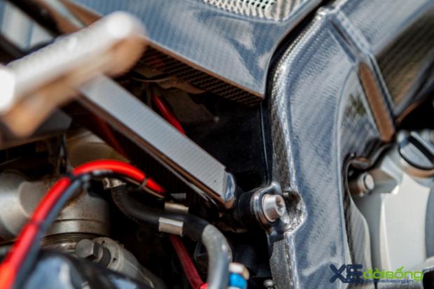 Với tổng thể carbon, chiếc xe sẽ để “lộ” khiếm khuyết không mấy nổi bật là khung phần kim loại ở vị trí khung chính/phụ. Vì vậy, chủ xe tăng cường thêm những mảng ốp carbon nhằm giúp xe trở nên liền lạc hơn rất nhiều.