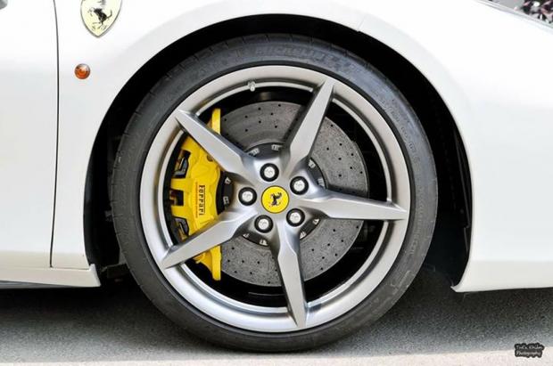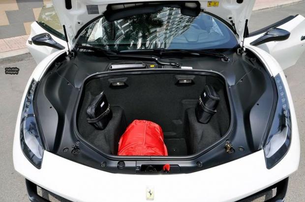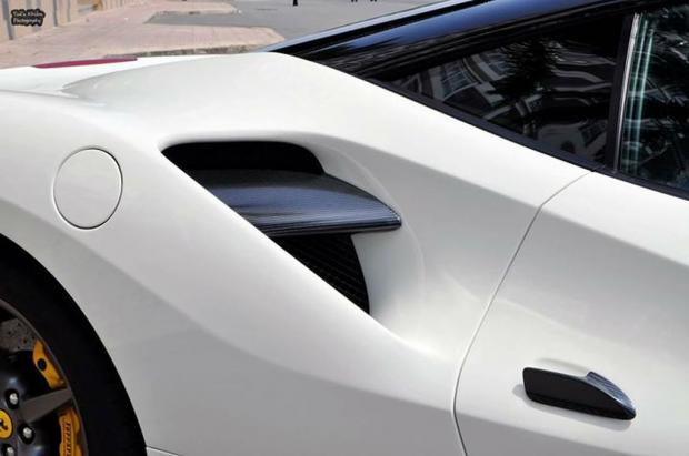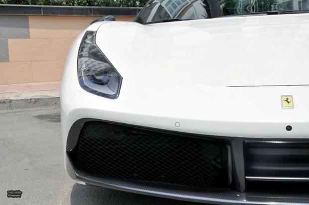 Đặc biệt hơn cả, khác với những chiếc Ferrari 488 GTB trắng từng lộ diện tại Việt Nam, Ferrari 488 GTB trắng từng thuộc về Cường Đô La đã được độ lại với với những chi tiết làm bằng carbon như phần cản trước, gương chiếu hậu. Ngoài ra, xe còn gây ấn tượng với cùm phanh vàng nổi bật.