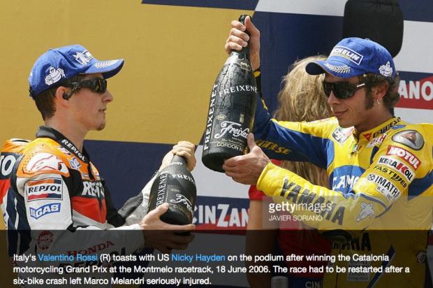 Nicky Hayden bật khóc sau khi kết thúc chặng Valencia Grand Prix ở vị trí thứ 3, tại trường đua Ricardo Tormo, qua đó giành chiến thắng MotoGP 2006, ngày 29/10/2006.