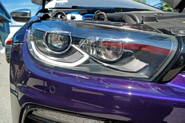 Lộ diện với diện mạo màu xanh tím độc đáo, Volkswagen Scirocco R 2017 tại Việt Nam càng thêm nổi bật và cá tính. Ngoại thất của xe toát lên vẻ thể thao rất mạnh mẽ với lưới tản nhiệt và hốc gió tạo hình mang cá ở các khe. Điểm này khá giống Audi TT.
