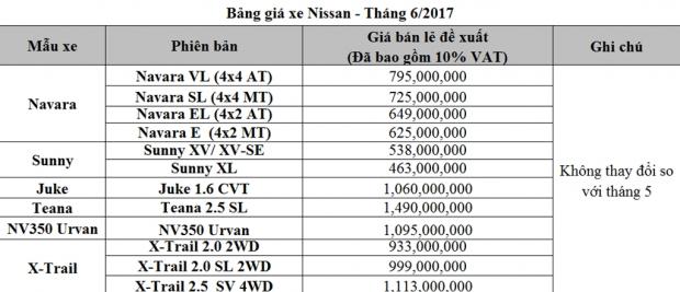 Nissan Việt Nam đồng loạt giảm giá các mẫu xe X-Trail, Navara, Sunny, Teana hay Juke trong tháng 3/2017, với mức cao nhất trị giá 100 triệu đồng.