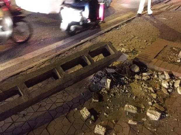 Chiếc cột điện trên vỉa hè gãy gục vì cú đâm mạnh