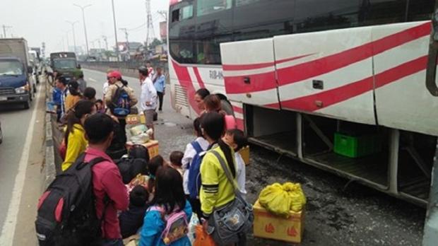 Vụ việc khiến hàng chục hành khách trên xe hoảng loạn la hét. Tại hiện trường, các phương tiện hư hỏng nặng, nhiều mảnh vỡ văng tung tóe.