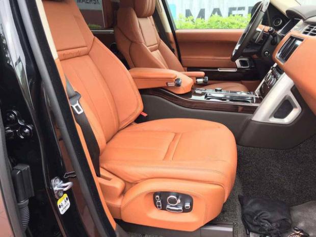 Bên trong khoang lái, Range Rover SVAutobiography Hybrid có 'nội y' màu da bò kết hợp cùng các chi tiết ốp gỗ quý và mạ crôm sáng loáng.