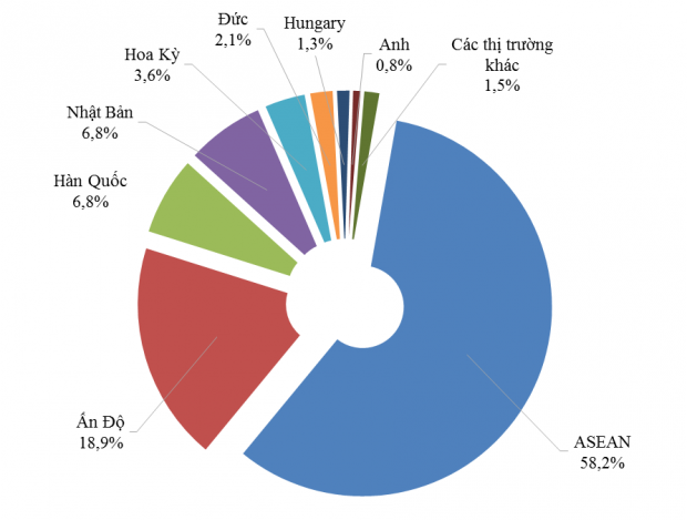 Thị trường Thái Lan đứng thứ 2 với 6,6 nghìn chiếc, trị giá 105 triệu USD, tăng 84,1% về lượng và 157,4% về trị giá so với cùng kỳ năm trước. Đơn giá khai báo bình quân đạt 15,8 nghìn USD/chiếc (khoảng 360 triệu đồng).