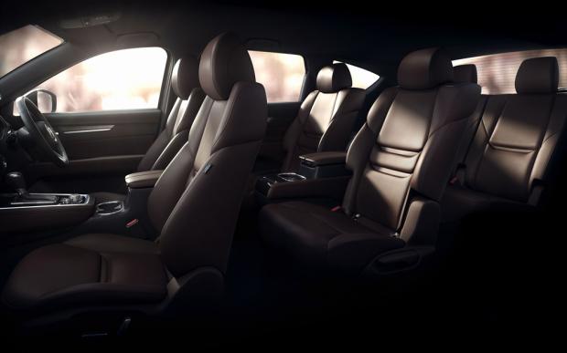 Mazda CX-8 có 2 phiên bản 7 và 6 chỗ ngồi, ghế bọc da ôm người ngồi, thiết kế vô-lăng và vị trí cần số gần như tương tự với các sản phẩm của Mazda. Trong đó, phiên bản 6 chỗ sẽ được trang bị 2 ghế thương gia ở giữa, tách riêng với nhau, đi kèm bệ tì tay trung tâm và giá đỡ cốc.