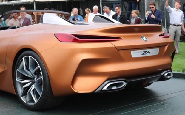 Hốc hút gió được mở rộng rất lớn, đèn pha trước dạng 4 mắt hiện đại nằm chéo khác hoàn toàn với kiểu nằm ngang của phiên bản trước. Ngoại thất của Z4 Concept được sơn bằng chất liệu sơn dầu Energetic màu cam khá bắt mắt, la-zăng 20 inch hợp kim nhôm 5 chấu kép kiểu mới. Cụm đèn hậu hình chữ L thanh mạnh, khá giống với chiếc 8 Series từng ra mắt cách đây không lâu. Bộ khuếch tán gió carbon cùng cặp ống xả góc cạnh.