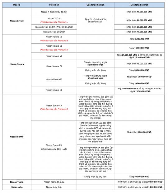 Chương trình khuyến mại tháng 9 dành cho các khách hàng mua xe X-Trail, Navara, Juke, Teana, Sunny và các phiên bản đặc biệt của X-Trail, Sunny và Navara.