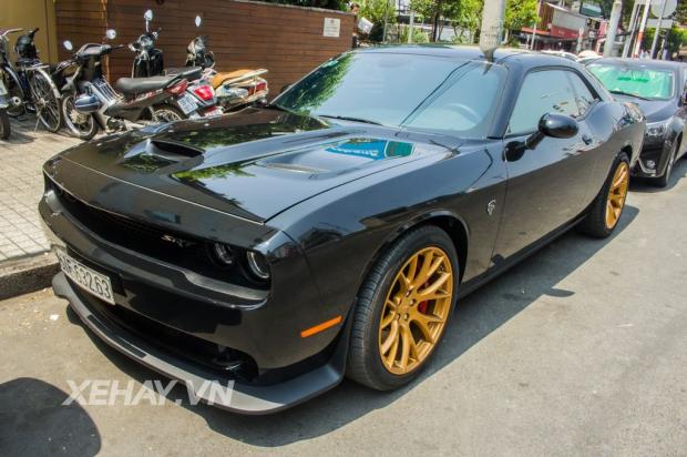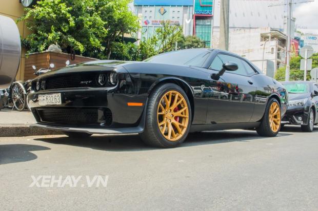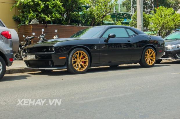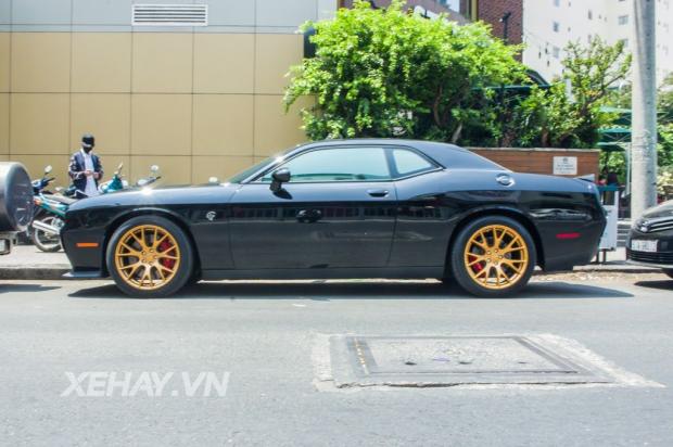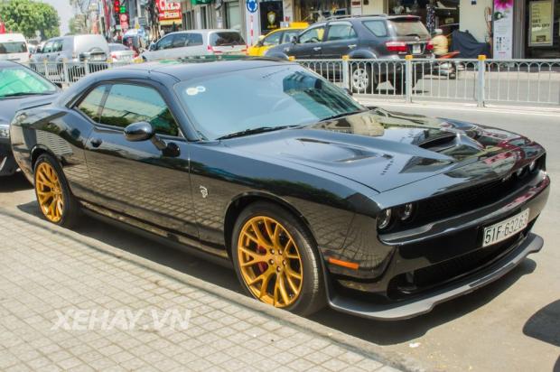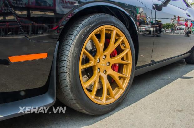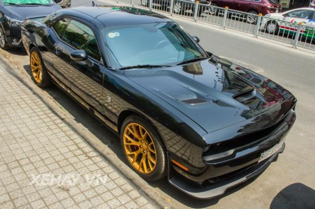 Chiếc xe cơ bắp thuần chất Mỹ, Dodge Challenger SRT Hellcat đầu tiên của Việt Nam ngay sau khi ra biển trắng đã thường xuyên lọt vào ống kính 'thợ săn ảnh' khi di chuyển trên phố. Ở lần bắt gặp này, 'Mèo địa ngục' gây ấn tượng đặc biệt khi được chủ nhân sơn mới bộ mâm bằng một màu vàng đồng nổi bật.