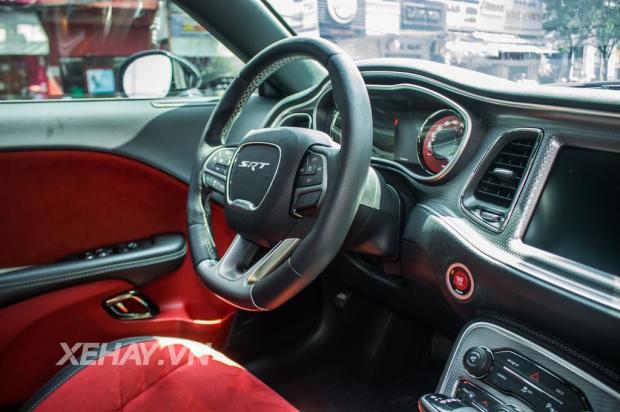 Ghế bọc da màu đen với tựa lưng bằng vải nhung màu đỏ bắt mắt. Hệ thống dây đai an toàn dạng dây đổi giống xe đua. Trên mỗi ghế da Alcantara và Nappa đều được thêu logo SRT. Nội thất của xe có nhiều chi tiết được làm thủ công bắt mắt.