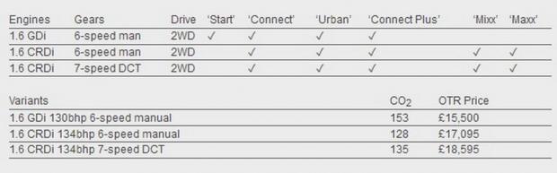 Phiên bản tiêu chuẩn động cơ xăng 1.6 Gdi sẽ có giá từ 15.500 bảng (~ 490 triệu VND), nghĩa là mẫu Urban có giá cao hơn phiên bản Connect và thấp hơn phiên bản Connect Plus.