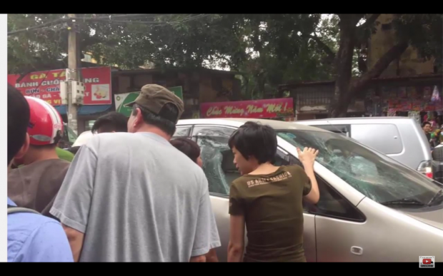 Ngay sau khi dừng được chiếc xe ở con phố Lương Định Của, một số người dân đã dùng gạch, gậy để phá cửa kính nhằm lôi được người lái xe 'không bình thường' ra ngoài. Tuy nhiên tài xế không tỏ ý hối hận sẵn sàng đánh trả lực lượng người vây bắt mình.