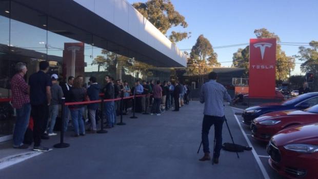 Hàng người xếp hàng để đặt mua Tesla Model 3.