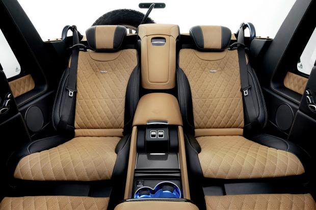 Điểm đáng chú ý trên mẫu SUV siêu sang này là không gian hàng ghế thứ 2 tách biệt hoàn toàn với chỗ ngồi phía trước, và chỉ còn hai chỗ ngồi sang trọng. Bệ điều khiển nằm ở trung tâm và hai màn hình TFT được đặt trước mặt phục vụ nhu cầu giải trí cho các khách VIP.