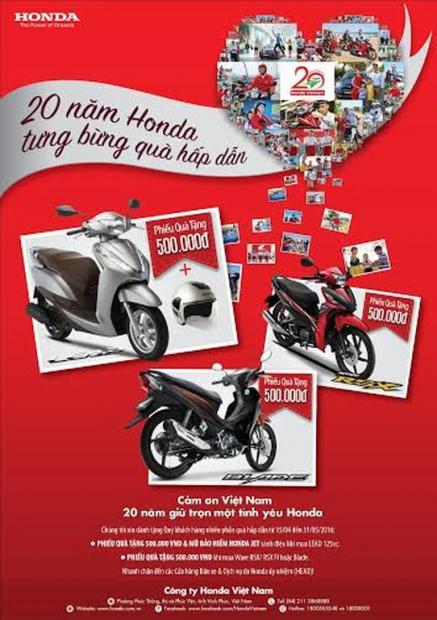 Năm 2016 đánh dấu mốc son 20 năm thành lập và những nỗ lực phát triển không ngừng tại Việt Nam của Honda Việt Nam. Nhân dịp này, HVN cũng vừa chính thức giới thiệu chương trình khuyến mại trên các dòng sản phẩm của hãng.