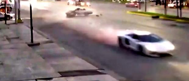 Lamborghini phóng như bay sau khi bị taxi tông ngang hông