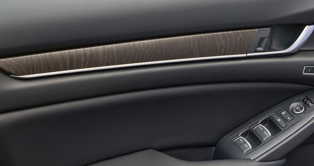Gỗ Zelkova sử dụng trên bảng điều khiển và trang trí trong khoang nội thất của Honda Accord 2018 được đánh giá là tốt nhất hiện nay. Loại gỗ này được sản xuất bằng phương pháp xếp chồng bốn lớp vật liệu lên trên một nền plastic. Được biệt, lốp gỗ trên cùng được hoàn thiện để có dáng vẻ bên ngoài giống với gỗ tự nhiên.