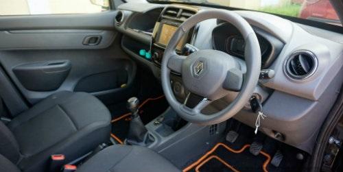 Bản thấp nhất của Kwid không có đèn sương mù, không điều hòa và radio. Ngoài ra, vô-lăng không có trợ lực điện, cửa sổ phải mở kéo bằng tay và thiếu đèn chiếu sáng ở cabin. Riêng bản cao cấp trang bị điều hòa, cửa kính trước chỉnh điện, vô lăng trợ lực điện, hệ thống khóa không cần chìa.