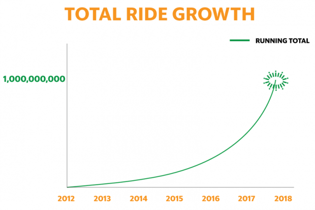 Biểu đồ tăng trưởng các chuyến xe của Grab qua từng năm