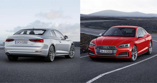 Thiết kế bên ngoài của A5 Coupe và S5 Coupe 2017 nổi bật với cụm đèn pha mới kết hợp cùng dải đèn chạy ngày sử dụng công nghệ LED trông khá ngầu. Lưới tản nhiệt hình lục giác với 6 nan ngang làm từ kim loại mạ chrome thay cho loại 7 nan trước đó. Hốc hút gió chứa đèn sương mù dạng LED cũng được làm lại trông góc cạnh và ấn tượng hơn.