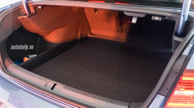 Cốp Volkswagen Passat 2016 có thể gia tăng khả năng chứa đồ bằng cách gập hàng ghế thứ 2 xuống.