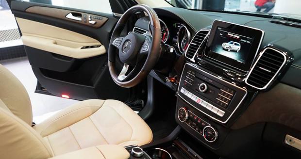 Ở bên trong, mẫu xe SUV 7 chỗ này sở hữu một giao diện điều khiển trung tâm mới với màn hình đa phương tiện 8 inch được đặt tách rời như một chiếc máy tính bảng. Ngoài ra, vô-lăng trên xe được đổi sang kiểu 3 chấu thể thao thay vì 4 chấu như trước. Mercedes-Benz GLS 2017 cũng sẽ được cung cấp một hệ thống ion hóa không khí tùy chọn giúp cải thiện chất lượng không khí trong cabin nội thất.