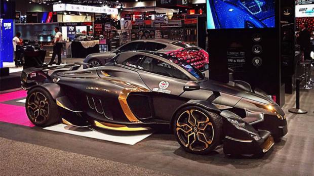 Bên ngoài chiếc xe với ngoại hình độc đáo, trên nền đen nhám, các viền trang trí vàng óng tạo nên sự tương phản mạnh và ngay cả các mâm xe thiết kế đặc sắc cũng được trang trí viền vàng.