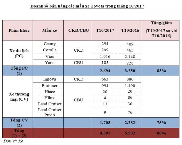 Nguồn : http://xehay.vn/toyota-viet-nam-ban-ra-4-397-xe-trong-thang-10-2017.html