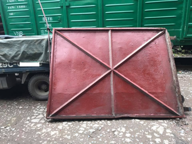 Cú va chạm khiến 1 tấm chắn trên toa hàng rơi thẳng vào xe tải