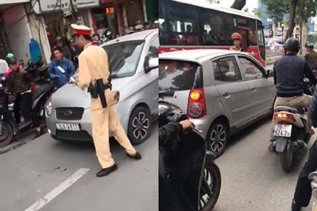 Trước đó, chiều 19-11, tổ công tác của Đội CSGT số 3 làm nhiệm vụ tại Giảng Võ - Đê La Thành, phát hiện chiếc xe ô tô nhãn hiệu Kia 4 chỗ, BKS: 30X-9811 hết hạn đăng kiểm, đã ra hiệu lệnh yêu cầu lái xe dừng lại, xuất trình giấy tờ để kiểm tra.