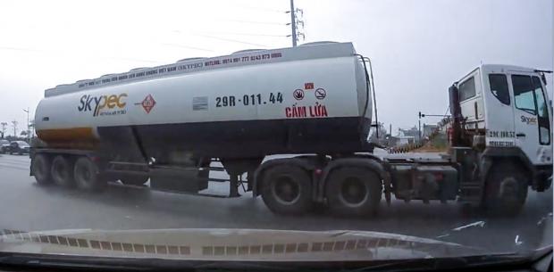 Phát hiện chiếc xe bồn quyết vượt đèn đỏ khá kịp thời, chủ xe có camera hành trình đã đạp phanh tranh được va chạm. Ở chiều ngược lại, một quân nhân đi xe máy đã phải gồng mình bóp phanh và dùng cả chân để nghiêng xe hãm tốc độ trước khi dàn bánh xe 'tử thần' lướt qua trước mặt.
