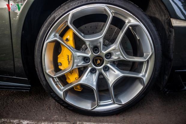Đây là chiếc Huracan LP610-4 đầu tiên được đưa về Việt Nam. Xe có màu ngoại thất Grigio Lynx cùng nội thất màu đen-vàng.